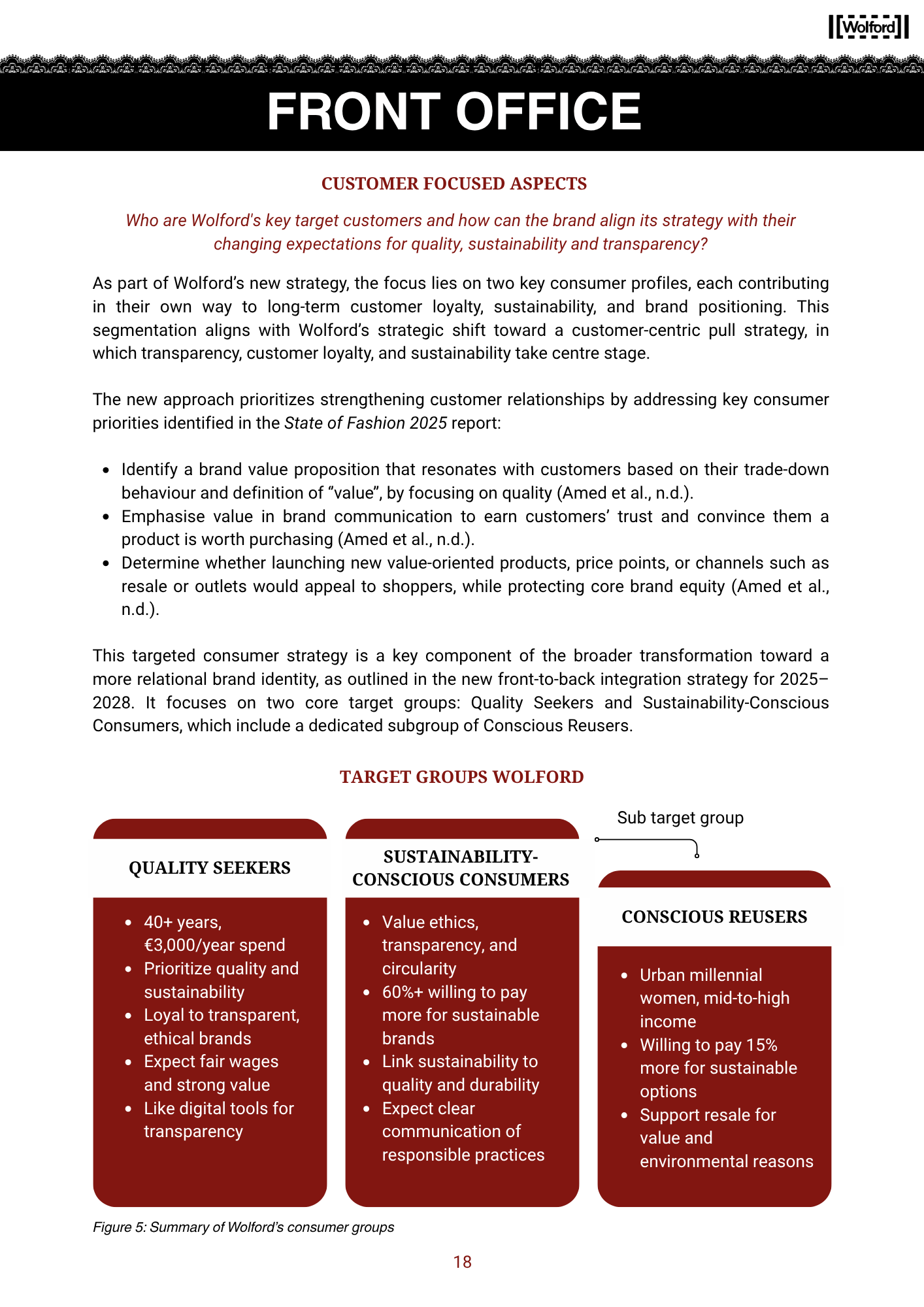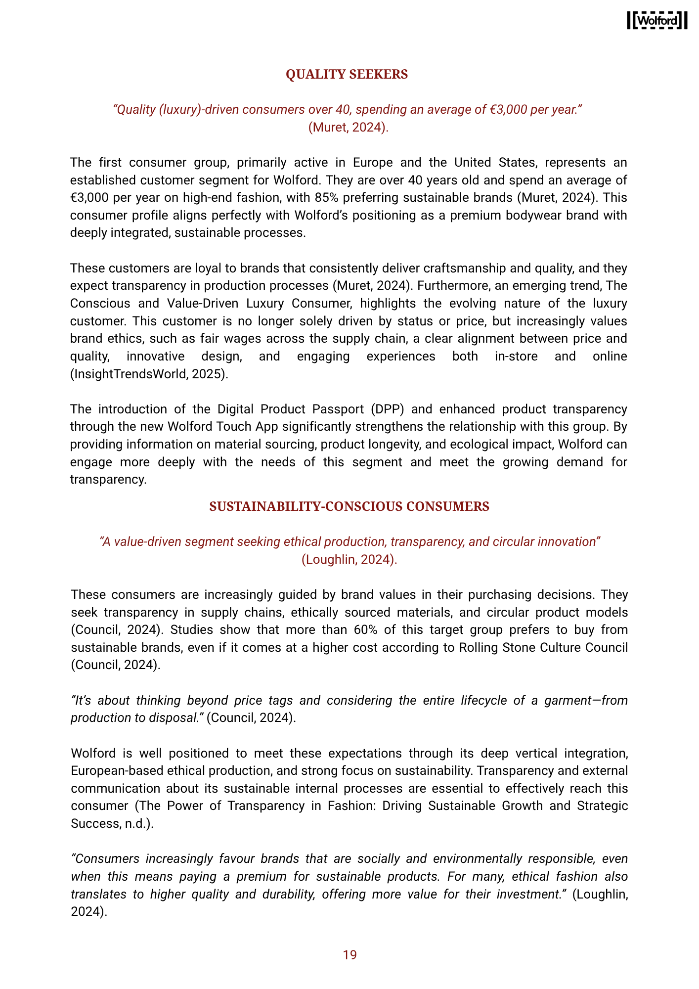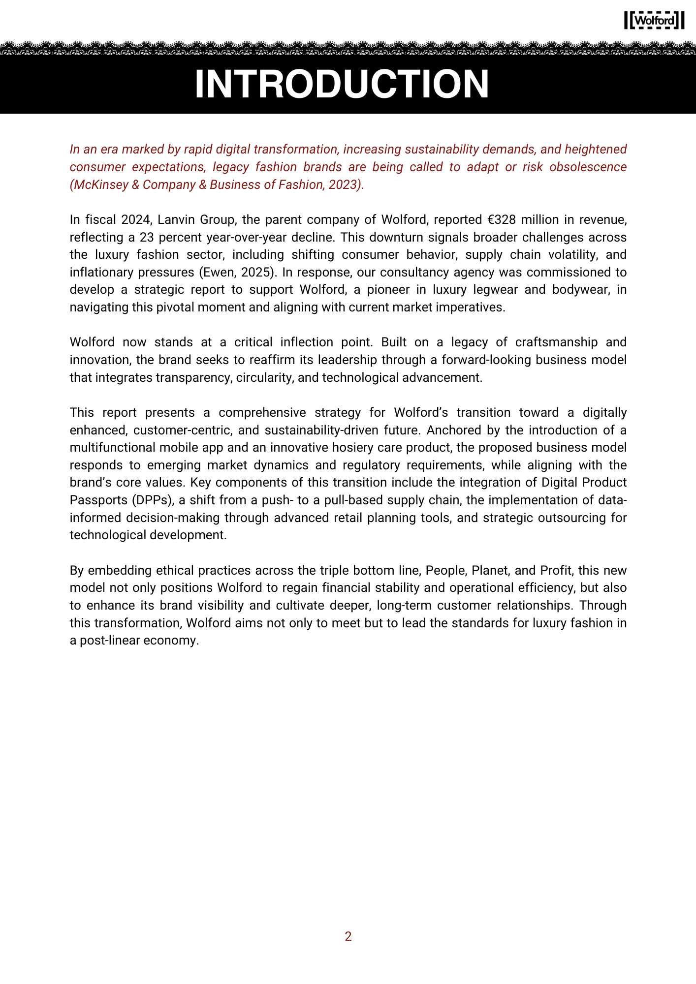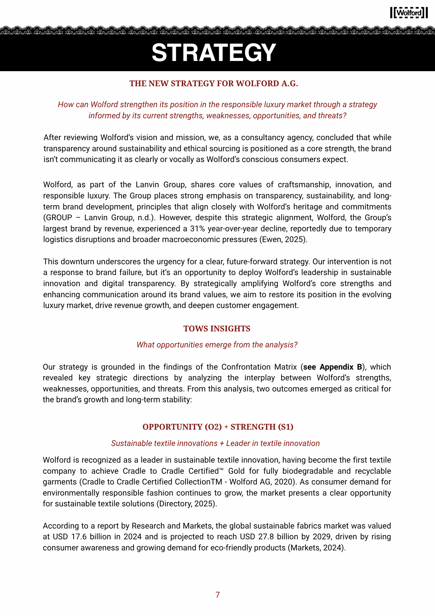 For Wolford, I developed a strategic concept as part of a hypothetical research project in which we acted as advisors to the brand. Together with my team, I created “Wolford Touch,” an app concept focused on care, resale, and transparency, featuring product care tutorials, a resale function, and Digital Product Passports. I contributed to shaping the concept, writing the strategic rationale, and visualising the app screens to show how a digital touchpoint can extend product life and strengthen customer relationships.